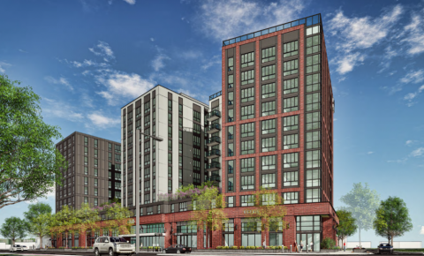 Above: Rendering of what The Hub will look like once complete, seen from the northwest.