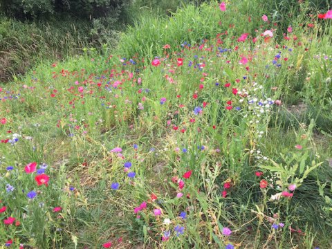 Below: Flowers growing on a bank along East Lansing’s Northern Tier Trail