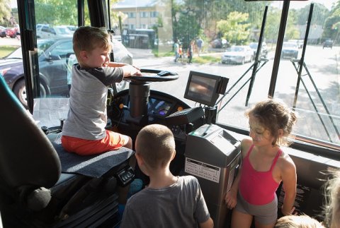 Above: The wheels on the CATA bus go round and round (but not while parked).