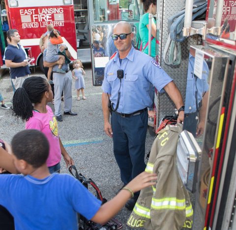 The chance to teach kids to trust, and not be afraid, of safety vehicles and law enforcement personnel is one of the reasons why East Lansing Police Deputy Chief Steve Gonzalez looks forward to the annual National Night Out and Touch-a-Truck event.