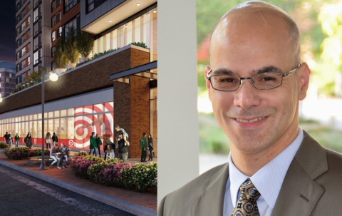 Above: City Manager George Lahanas and image of the planned Target store downtown