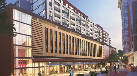 Above: Developer's rendering of the private retail space and rental apartments proposed to be built on public land as part of the Center City District redevelopment.