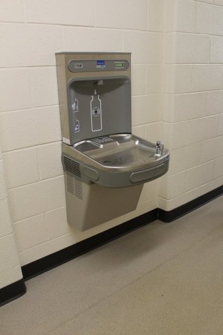 Additional improvements include all new plumbing, which features water fountains with bottle filling spouts (above). There is updated electrical infrastructure to accommodate classroom technology, smart boards and projectors that were repurposed from Glencairn Elementary.