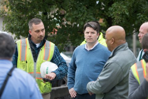Shortly after the accident, East Lansing police officers, fire command officers, the City’s building inspector, the City's Director of Planning, and the City Manager were on the scene talking with representatives of Walsh, the construction company for the project.