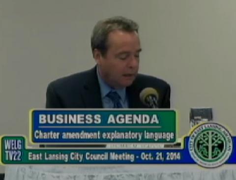City Council tonight discussed and approved introductory language for a ballot item that is set to ask voters whether the City’s charter should be amended to limit the City of East Lansing’s regulation of “the use, possession or transfer of less than 1 ounce of marijuana, on private property, or transportation of less than 1 ounce of marijuana, by a person who has attained the age of 21 years.”