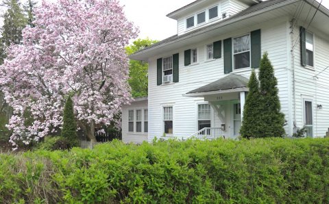 A student rental house stands directly behind his home. The student rentals have been maintained under the Historic District rules.
