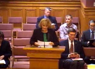 Photo: Ingham County FOIA Coordinator Becky Bennett speaks at last night’s hearing.