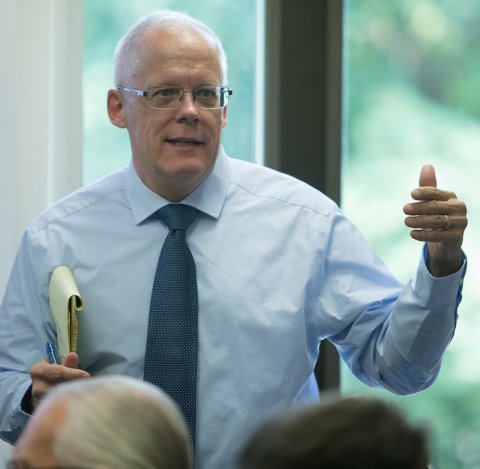 Below: Peter Dewan at today's meeting.
