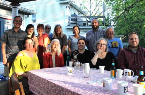 Photo shows a gathering of the ELi core reporting team, last week. Back row, from left: Aron Sousa, Paige Filice, Karessa Wheeler, Ken Sperber, Ann Kammerer, Alice Dreger, Chris Wardell, Val Thonger. Front row, from left: Jessy Gregg, Chris Root, Sarah Spohn, Ann Nichols, Andrew Graham.