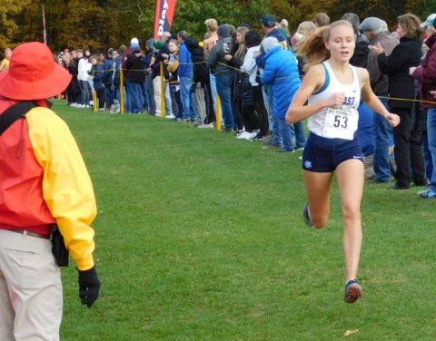 East Lansing (* indicates state qualifier)—1. Abbie Draheim 18:17.2*; 8. Anna Delgado 19:08.1*; 32. Molly Conlin 20:24.1; 57. Barbara Stout 21:04.9; 62. Esther Waller 21:23.7; 80. Grace Rose 21:56.7; 93. Payton Baker 22:50.4