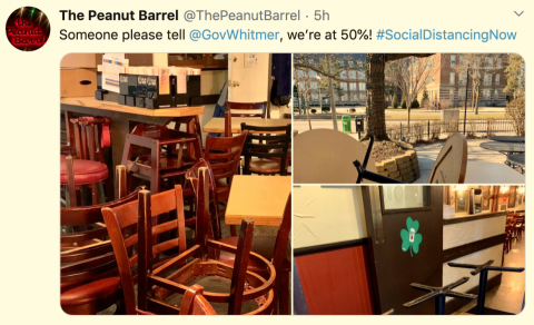 Owners of The Peanut Barrel tweeted this morning that they were moving tables to put bigger spaces between people.