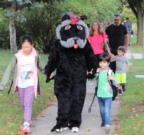 Joy Campbell, who coordinated the Whitehills meet-up, told ELi that all of the Whitehills students were given reflective snap bracelets as a fun way to increase safety. She told ELi, “reflective gear is an easy way to boost visibility, especially at this time of year when dusk falls earlier but it's still nice enough to be playing outside. We're asking our school grown-ups to also consider using the safety bracelet during trick-or-treating or other evening activities.”