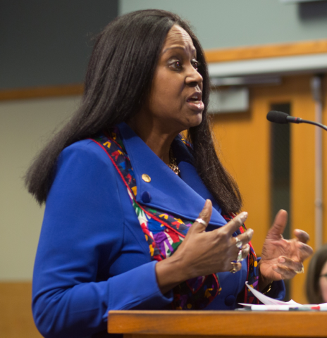 Above: Veronica Wilkerson Johnson asks Council not to approve a cull (photo by Raymond Holt)