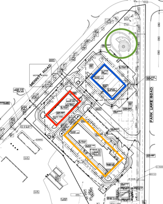 The redevelopment is set to have two driveways, one on Merritt Road and one on Park Lake Road, that approximately cut the property in half. The Park Lake Road entrance is set to be immediately across from an access driveway for Costco, which project engineer Andy Andre says is meant to reduce “any turning conflicts.”
