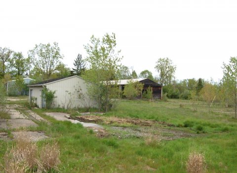 Kodiak Landarc has submitted a site plan for three buildings on the Merritt Road property: a medical marijuana provisioning center, a hotel, and a retail strip mall. There will also be a green space with a sculpture and a sitting area at the northern point of the property at the intersection of Merritt Road and Park Lake Road. The image below shows the property as it currently exists: