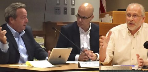Above, l-r: City Attorney Tom Yeadon, City Manager George Lahanas and Mayor Pro Tem Erik Altmann.