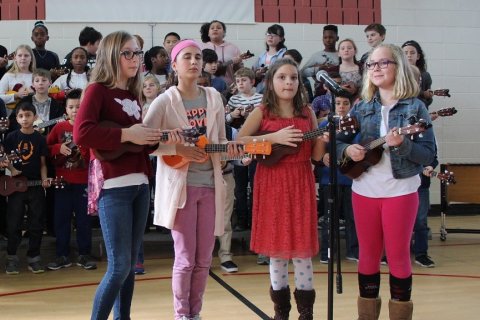 Bridge worked with each grade to learn a short set of holiday-themed musical selections, some featuring instruments such as recorders, xylophones, and ukuleles.