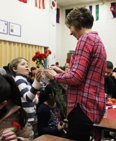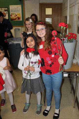 Glencairn’s Student Leadership Team, a group of student volunteers who work with the school administration to organize school events, also helped by serving food and distributing the red carnations. Parent volunteers organized by the PTO helped with set-up and clean-up.