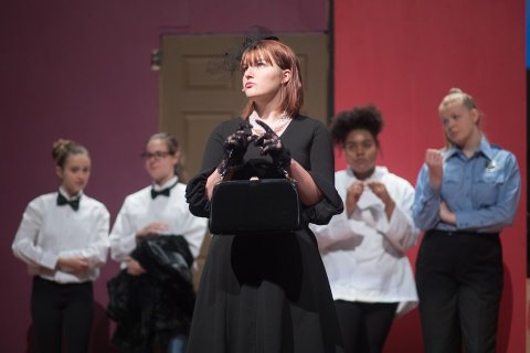 Zoe Aho plays Mrs. White in the East Lansing High School production of "Clue," which runs Thursday through Sunday. (Photos by Raymond Holt)