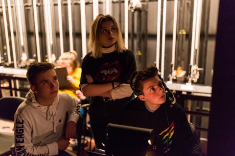 Members of the production crew (from left): Hunter Hambleton, Piper Dufner and Harriet Carr.