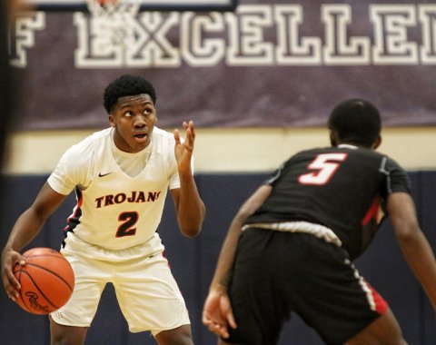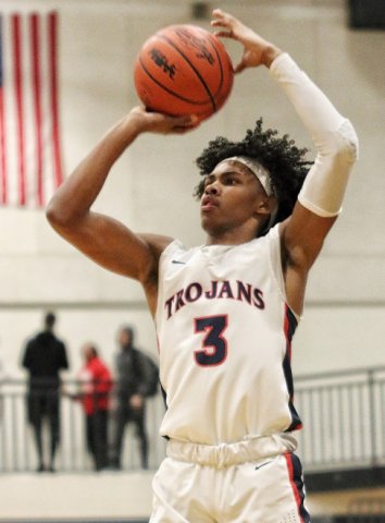 Andrel Anthony Jr. scored 15 points for the Trojans Friday night. (Photo by Gary Caldwell)