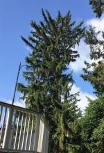 Ellis stated that BWL’s plan—to remove the entire southern trunk of the silver maple tree—could lead to “development of a column of decay” for this tree, and ultimately death. Ellis also said that BWL’s approach “would render this tree lop-sided with most of its weight leaning towards [the] neighbor’s house to the north.” Below is a photo of a tree cut on one side by BWL in the property next to Crittenden’s, demonstrating the one-side tree-cut approach BWL has been utilizing.
