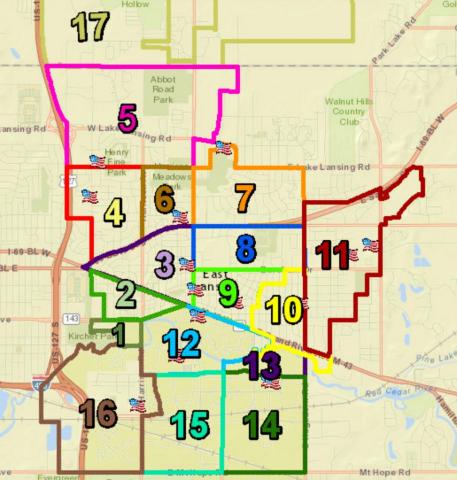 Above: the East Lansing voting precinct map