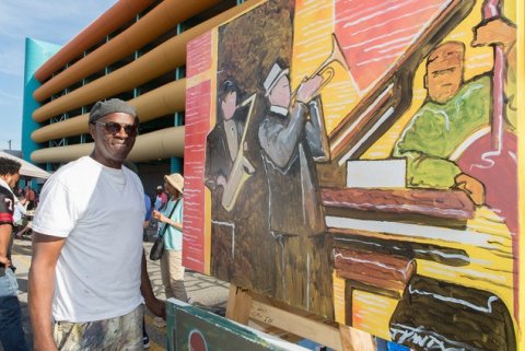 Julian Van Dyke paints during the 2019 Summer Solstice Jazz Festival.