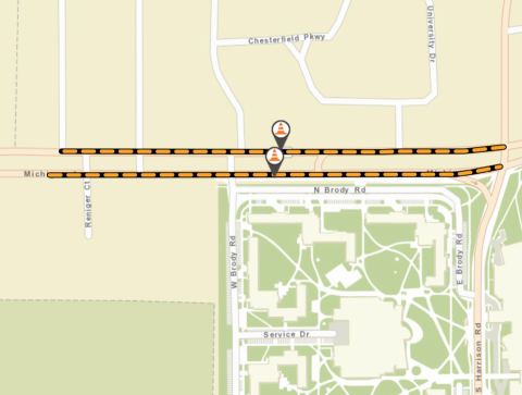 According to a bulletin about the meeting, “This fall, MDOT will reconfigure the existing crossovers between Morgan Lane and Harrison Road to safely and efficiently accommodate traffic along the corridor. Pedestrian crossings will be built within the corridor as well. This work is being coordinated with the ongoing City of East Lansing sewer project.”