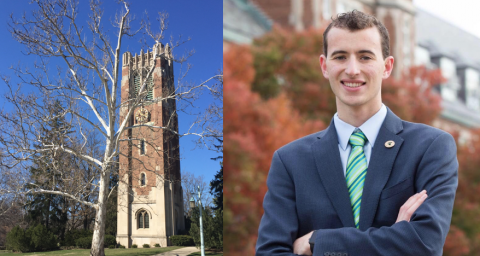 Above: MSU's Beaumont Tower and ASMSU President Lorenzo Santavicca.