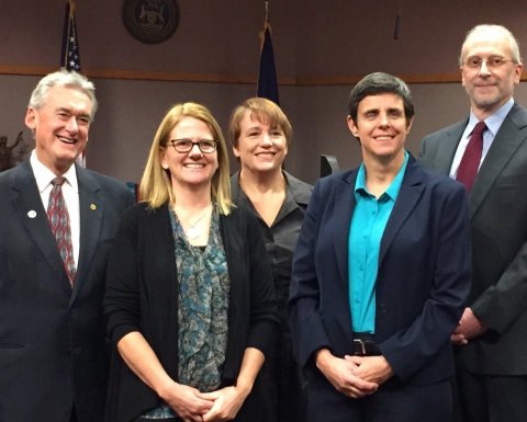 Below: East Lansing’s City Council (left to right: Meadows, Draheim, Woods, Beier, and Altmann)
