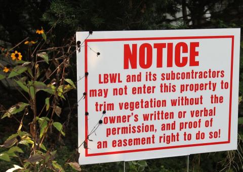 I asked Crittenden why he decided to launch the yard sign campaign. He responded, “Customers of the BWL have to know their property rights." He continued, "Trimming without a right to do so violates State law. Customers should make the BWL demonstrate, with written proof, that they have a property easement and that the easement specifies the right to trim vegetation and the amount of trimming that is allowed. Absent such documentation the homeowner should not permit the BWL to do any trimming unless the homeowner authorizes such.”