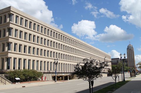 Above: The State Treasury building during warmer days.