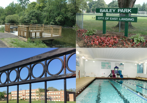 Photos of White Park, Bailey Park, Hannah Community Center (as shown below), and the Hannah pool courtesy City of East Lansing.