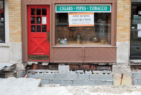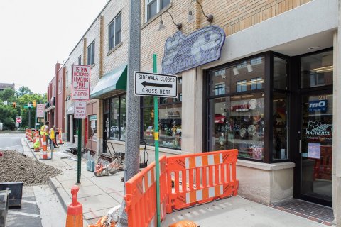With its sidewalk ripped out for now, Campbell’s Smoke Shop, at 207 M.A.C. Ave., directed its customers to a back entrance, while its next-door neighbor, the soon-to-close Mackerel Sky Gallery, faced a similar predicament with signs and detours and construction equipment clogging the streetscape outside its front door.