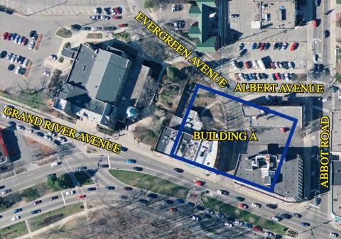 The large building (known as "Building A") would also take over the land of the "little bank building" at 303 Abbot Road, a property currently owned by the Downtown Development Authority, a public entity. The building at 303 Abbot was supposed to have been demolished by the developer under the City Center 2 plan. Instead the developer salvaged reusable materials from the publicly-owned building and then ceased work on the site. (For the FOIA that shows that City staff hastened the developer's ability to start demolition on the building in order to avoid having the agreement between the building and developer "time out," click here.)