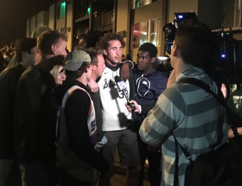 The Cedar Village area once again represented the epicenter. By the time the buzzer sounded at the end of the second half of the game, there was already a large police presence there. Media outlets from all over the state came to witness events, and throughout the night, a news helicopter could be heard hovering in the sky.