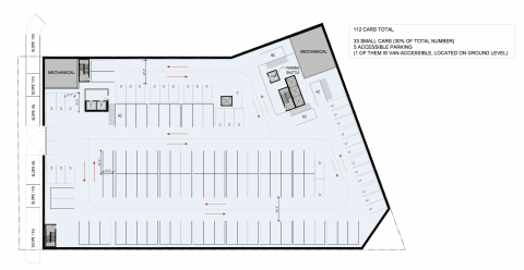 Above: Map of the on-site parking structure, which is intended primarily for hotel guests.