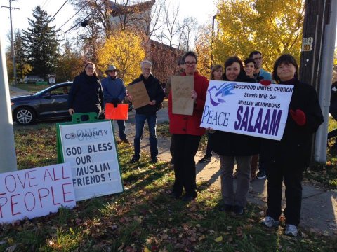 Above: photo from a support rally outside the East Lansing Islamic Center last November.