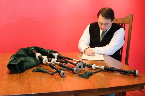 And what kind of music does a bagpiper/classical contemporary composer listen to? “I like to listen to current composers, such as John Corigliano, and Steven Bryant, as well as MSU’s own David Biedenbender and Zhou Tien. I do also listen to older composers such as Stravinsky, Debussy, and more. For bagpipe music, I listen to a lot of the pipe bands, especially the top pipe bands such as the Simon Fraser University Pipe Band and Inveraray and District Pipe Band. Another fun group to listen to,” he adds “is the Red Hot Chilli Pipers!”