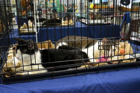 The group brought three dogs to Hannah Center Friday – Wilbur and Izzy, both five years old, and eleven-year-old Boots. And on the other side of the classroom was a line of cages filled with nine cats ranging in color, size and age from three frisky kittens to a pair of siblings – Superman and Bigglesworth – who are both 15 years old and hope to stay together in a new home.