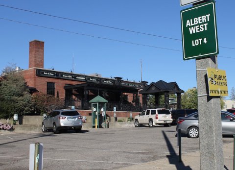 The current draft contract also contains numerous specific terms regarding property owned not by the DDA but by the City of East Lansing, including parking lot 4 (below), which is just south of Dublin Square at the corner of Albert Avenue and Abbot Road. Agreements like this over City-owned property can only be approved by a majority of City Council.