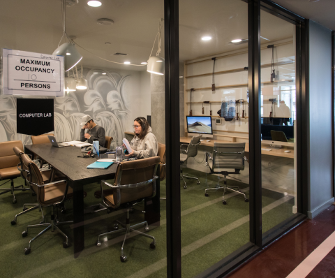 Above: A study room and computer lab with printer at The Hub (photos by Raymond Holt)