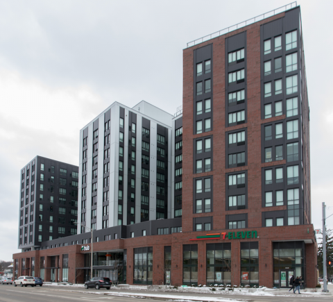 Residents of the area can easily walk to class and downtown shops and restaurants, and residents of The Hub now have in-building access to the new 7-Eleven store.