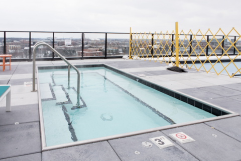 Hub residents also enjoy exclusive access to East Lansing’s only rooftop pool. While the pool is currently closed for the season, one of the two hot tubs is still open, the steam rising into the cold winter air.