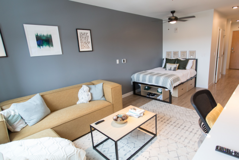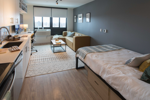 Above: A model studio apartment at The Hub in East Lansing (photos by Raymond Holt)