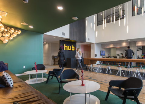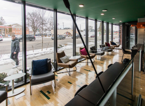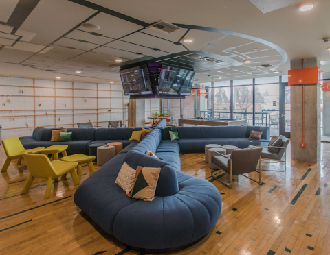 Above: Communal relaxation space in The Hub East Lansing (photo by Raymond Holt)