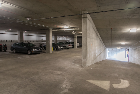 But, despite all these car-free options, many residents choose to pay extra for the parking available at The Hub. Most spots were occupied when we saw one level of the parking structure, and representatives of The Hub say in-building parking is about 95 percent leased.