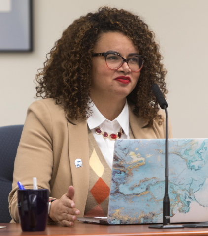 Trustee Terah Chambers at the January 27 meeting. (Photo by Raymond Holt)