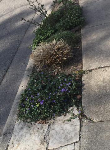 Many people plant trees in the parkway—ELi has previously brought you tips from City staff on how to do that—but there are more and more parkways planted as garden borders. The parkway is an interesting but tough place to garden. The soil is typically sandy, salty, trodden on, visited by dogs, and occasionally driven on. One year my parkway was even “cooked” by the exhaust of a fire truck idling while the Fire Department dealt with a downed power line on our street.
